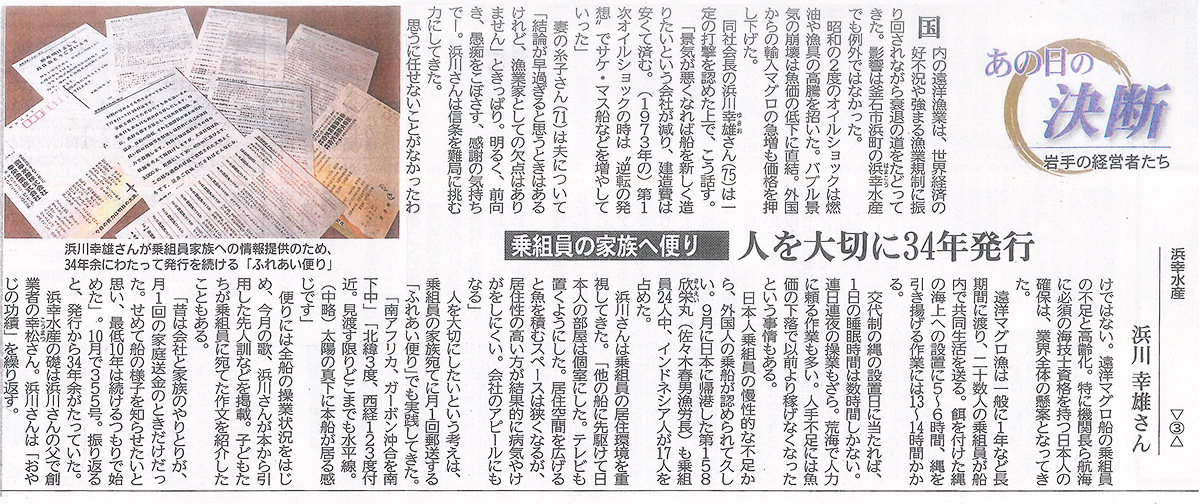 情報誌や新聞などのメディアに掲載された、濱幸水産関連の情報一覧です。